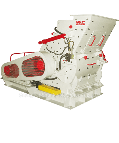 The main machine drives the main shaft through the motor and V-belt, so as to rotate the rotor. The centrifugal force generated by the rotation of the hammer head extends around. After large pieces of materials enter the crushing chamber from the feed port, they are broken by the high-speed hammer. The qualified materials after crushing are discharged from the castor bar with gap at the lower part, and the unqualified materials are left in the crushing chamber and repeatedly acted by hammer and bearing iron block until they can be discharged qualified. In order to avoid blockage, the water content of crushed materials is generally not more than 5%.